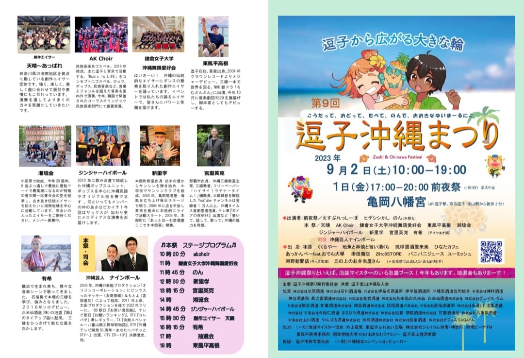 逗子から広がる大きな輪「第9回逗子沖縄まつり」は 9月2日(土)に 亀岡八幡宮で 開催! 1日は前夜祭です。