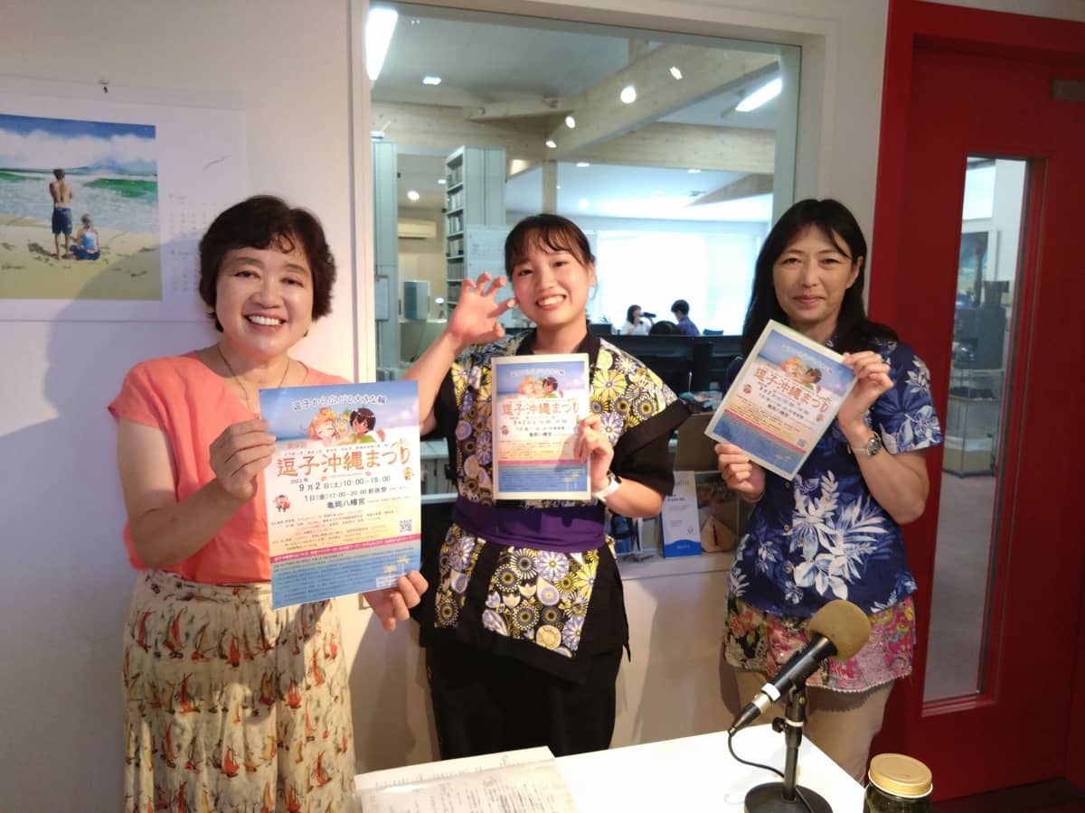 今日のゲストは逗子沖縄まつり実行委員会副委員長の玄真琴さんと 出演者から鎌倉女子大学沖縄舞踊愛好会主将の石坂優香さんです。