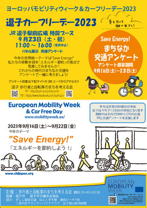 今年も世界同時開催『逗子カーフリーデー2023』 今年の世界統一テーマは”Save Energy!” 私たちの移動手段を「エネルギー節約」の視点で見直してみませんか?これからの時代のまちなか交通をアンケートで一緒に考えましょう!