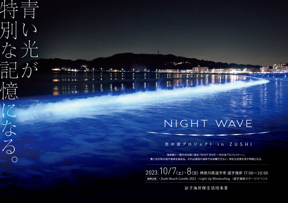 NIGHT WAVE 光の波プロジェクトin Zushi..は、逗子海岸のイルミネーションと、連携企画としてビーチキャンドル、ステージイベント、ライトアップウインドサーフィン、フードエリアなど、盛りだくさんのイベントになっていますね。
