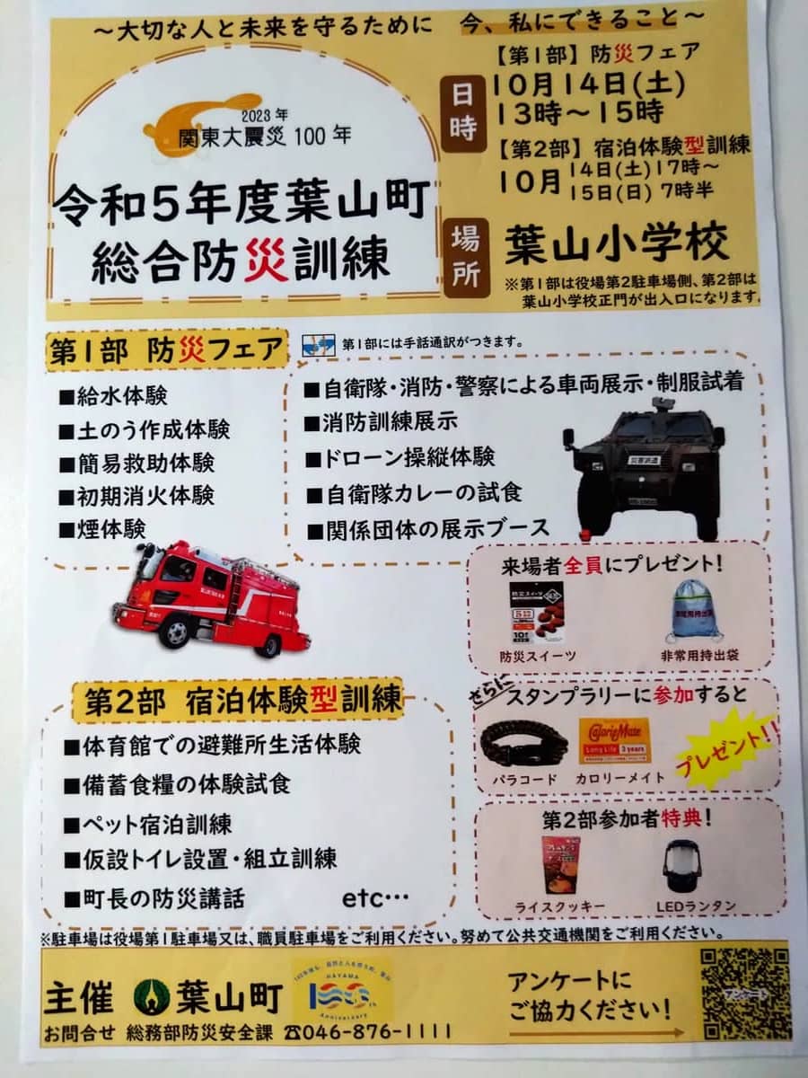 14日(土)と15日(日)に行われる 「令和5年度 葉山町総合防災訓練 防災フェア」について葉山町防災安全課の河木邦夫さんにお話いただきました。5年振りとなる葉山町総合防災訓練です。