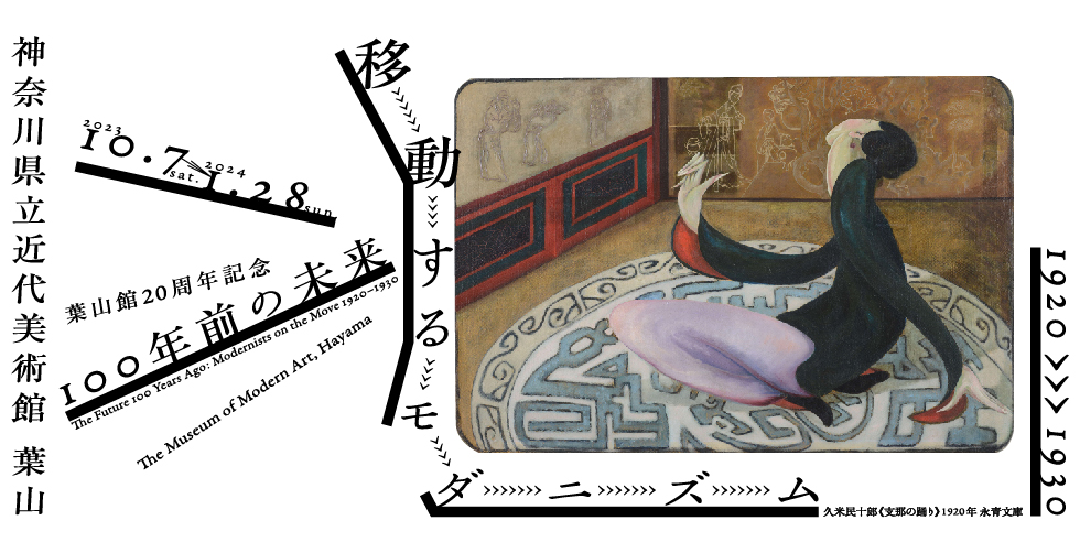 葉山館の開館20周年を記念して、当館が館名に掲げる「近代(モダン)」の文化が多様に展開した20世紀の20年代を再考します。1917年のロシア革命と1918年終結の第1次世界大戦により国際的な移動と伝播の時代が到来し、スペイン風邪によるパンデミック後の世界で、芸術家たちは国境を越えて活動しました。中村彝と鶴田吾郎が描いたエスペランティストの詩人ヴァシリー・エロシェンコの肖像を筆頭に、夭折画家・久米民十郎、土田麦僊や前田寛治、藤田嗣治などの滞欧・滞米作品、石本喜久治らが招来したドイツ新興美術、MAVOや三科など1923年の関東大震災とその復興を挟んで都会に展開した前衛諸派、シュルレアリスムの端緒から魯迅の木版画運動まで、大正から昭和へと移る100年前の世界が夢みた新しさの諸相を紹介します。