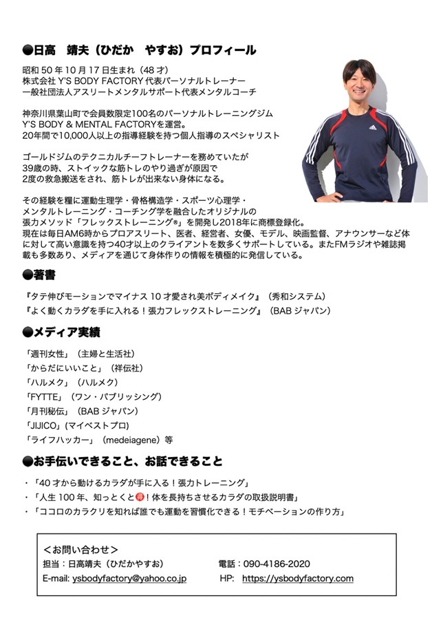 ◆BeachFMマガジン71号掲載店のご紹介。Y’S BODY & MENTAL FACTORY代表でパーソナルトレーナーの日高靖夫さん。