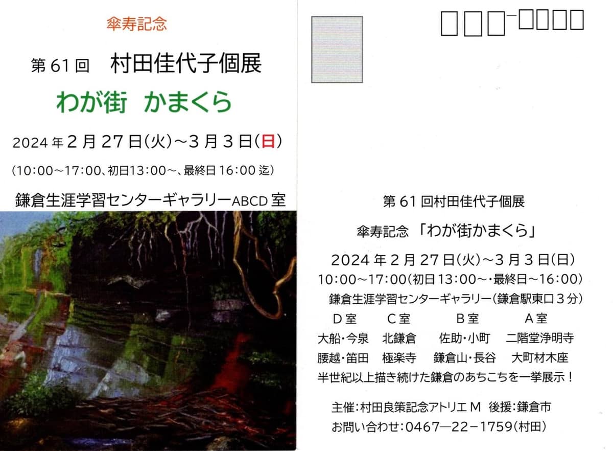 第 61 回村田佳代子個展 「わが街かまくら」 2月27日(火)~3月 3 日(日) 鎌倉生涯学習センターギャラリー