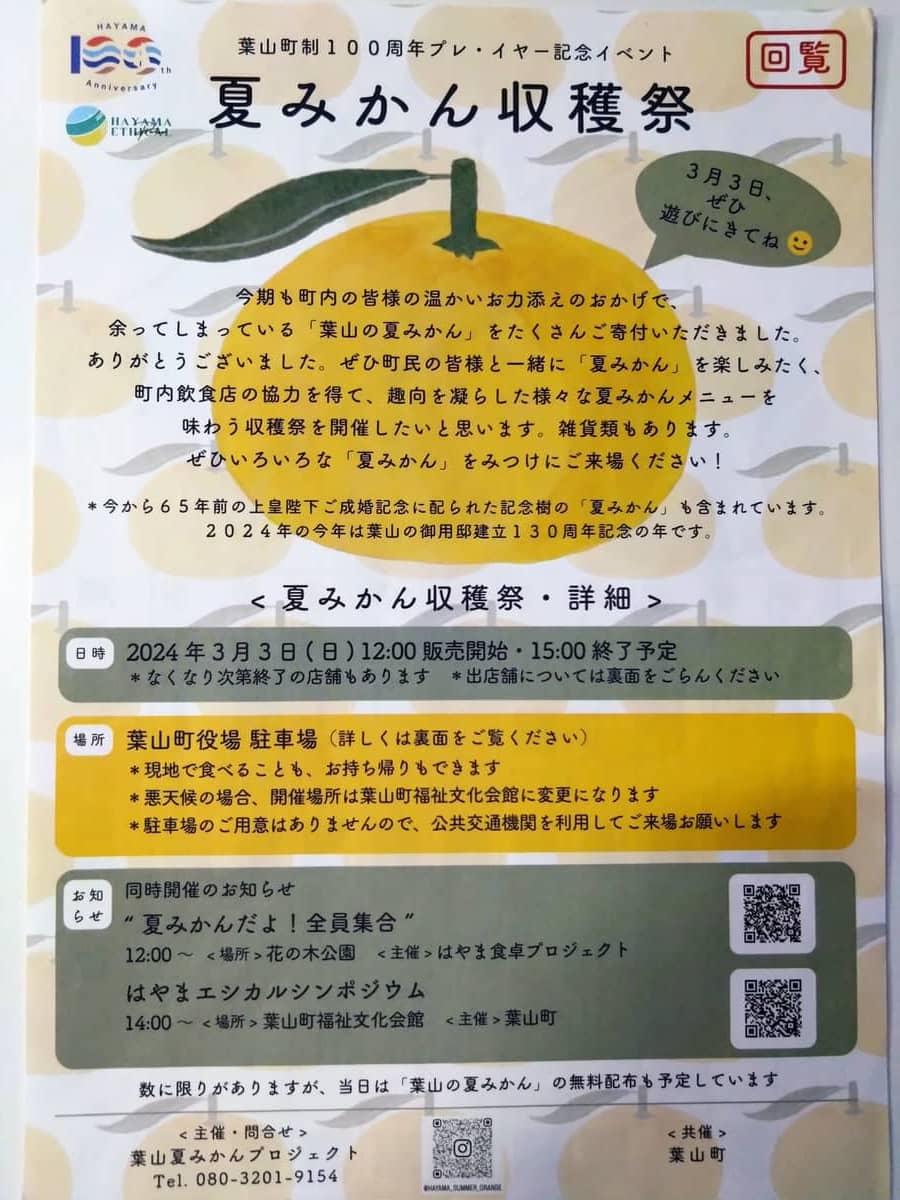 さて「夏みかん収穫祭」は 3月3日(日)12時~15時 葉山町役場駐車場、花の木公園 にて