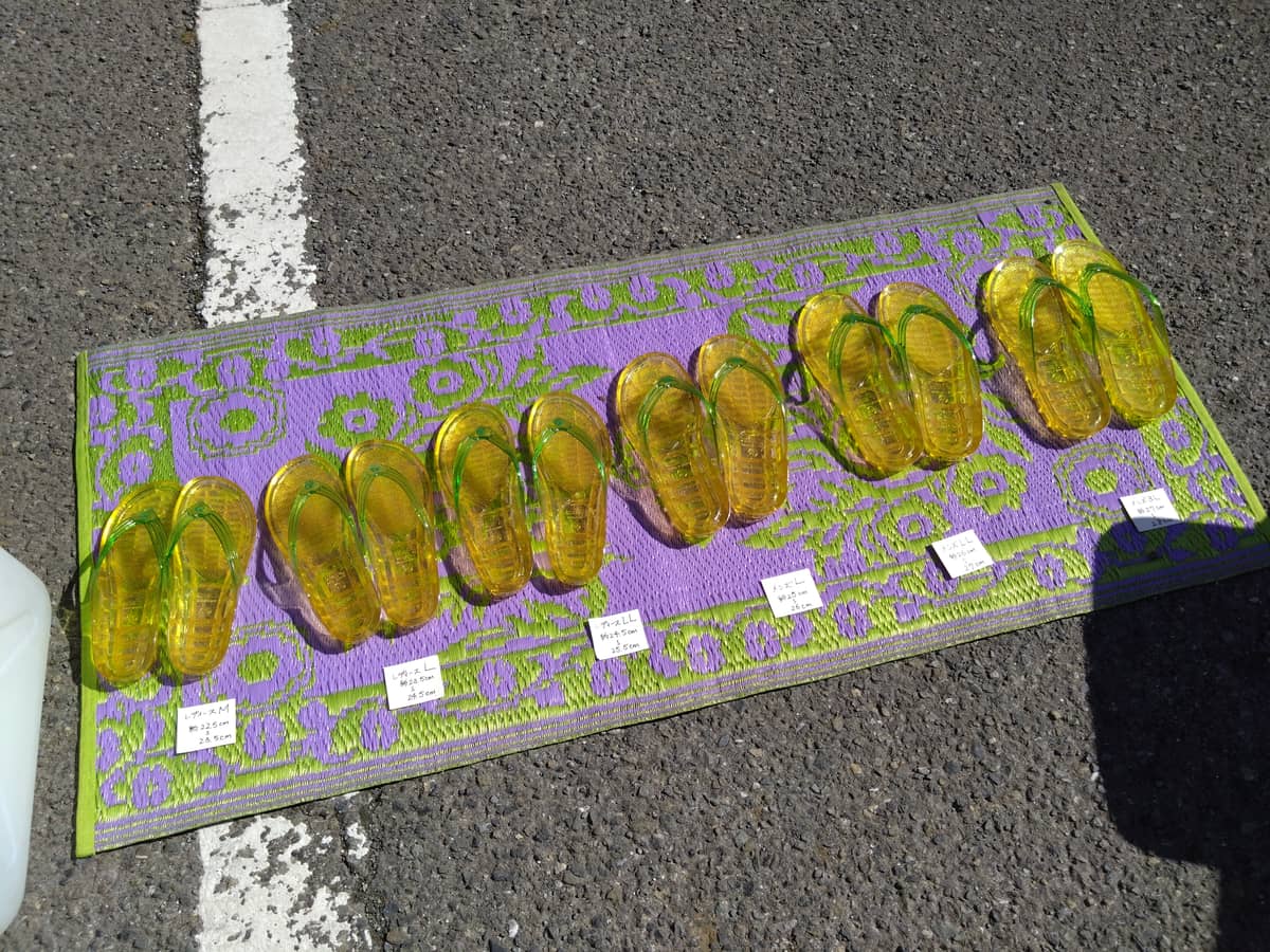 こちらは↑ 夏みかん色のサンダル。 福祉文化会館内では「はやまエシカルシンポジウム」 有意義な時間でした、帰り道に偶然、アオウミウシのMyusy(ミュージー)に会えたのでした!ミューシーには今度の火曜日、スタジオでまたお会いします!その姿は また明日!