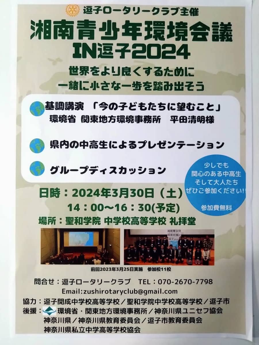 3月30日(土)湘南青少年環境会議IN逗子2024が開催されます。