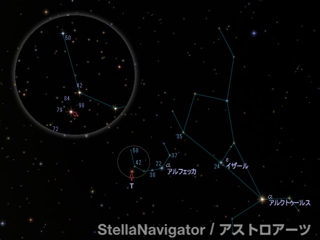 約80年間隔で爆発を起こす再帰新星(反復新星、回帰新星)の「かんむり座T」は、2024年の2月から9月の間で爆発が起こると予報もあり、多くの人が観測を続けています。