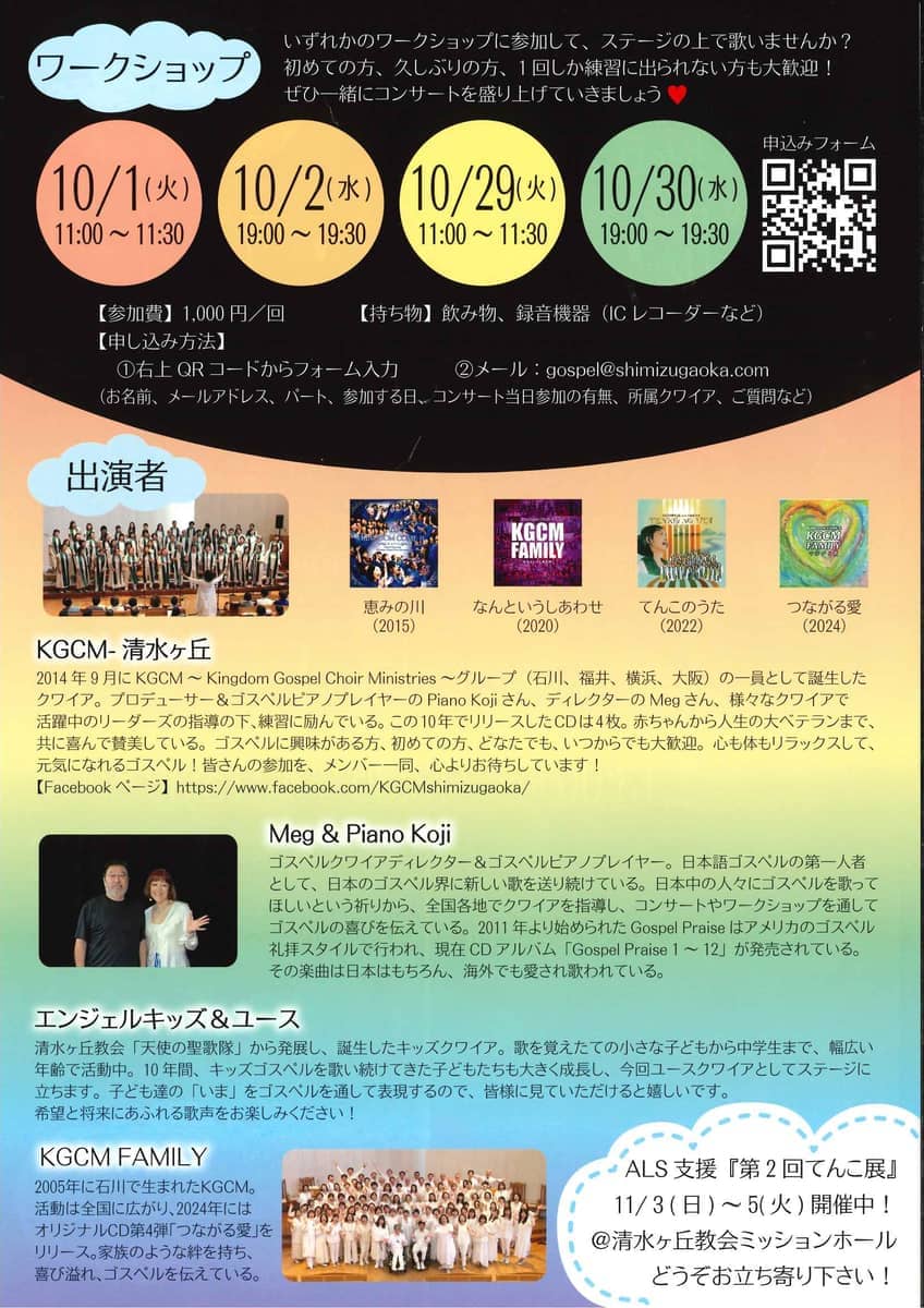 また、てんこちゃん作詞のゴスペルも歌われるゴスペルコンサートも行われます。