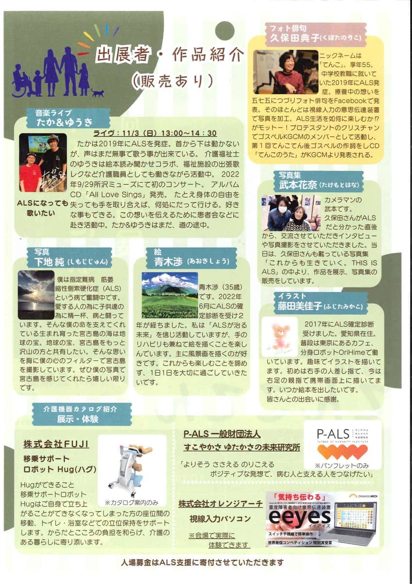 入場募金制 ※ALS支援に 寄付させていた だきます。