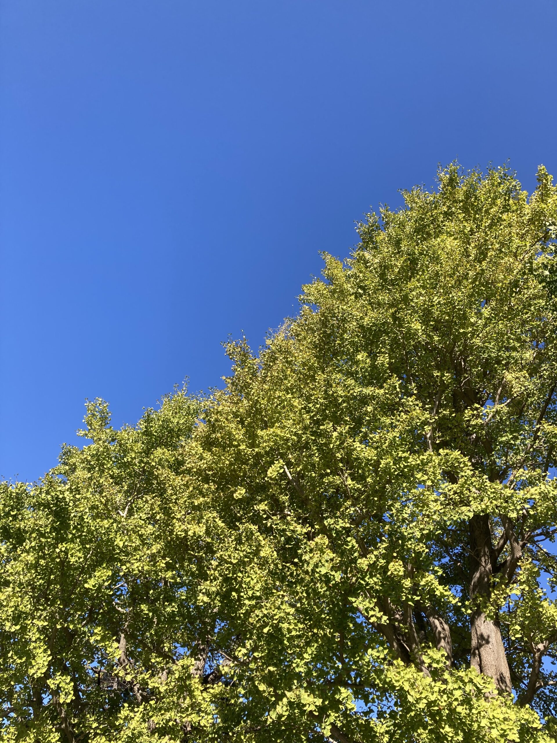 スタジオ近くの公園のイチョウがようやく黄色くなってきました。