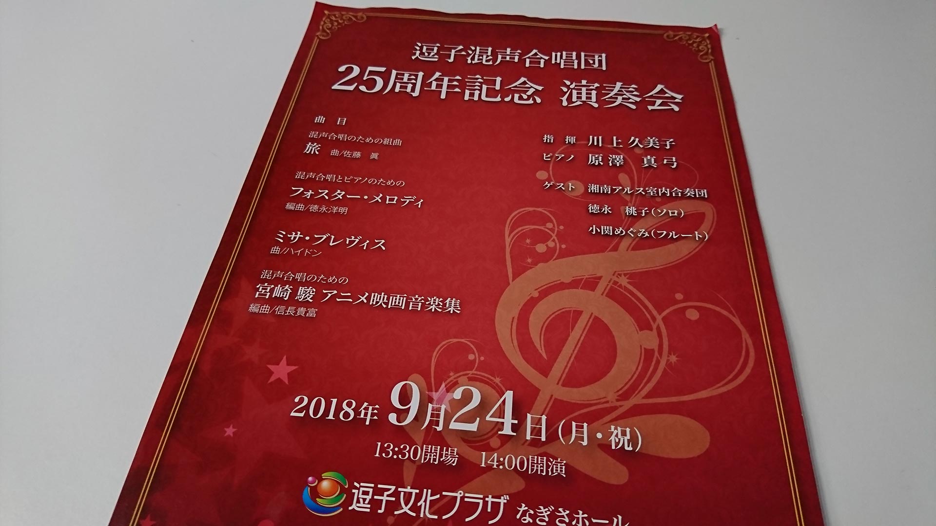 逗子混声合唱団「25周年記念演奏会」は 9月24日(月・祝)、逗子文化プラザなぎさホールにて