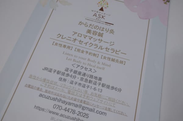 本日の「ハートフルライフ」は湘南ビーチFMマガジン57号ショップリストに掲載中、JR逗子駅より徒歩4分、はり灸マッサージASK(あすく)オー […]