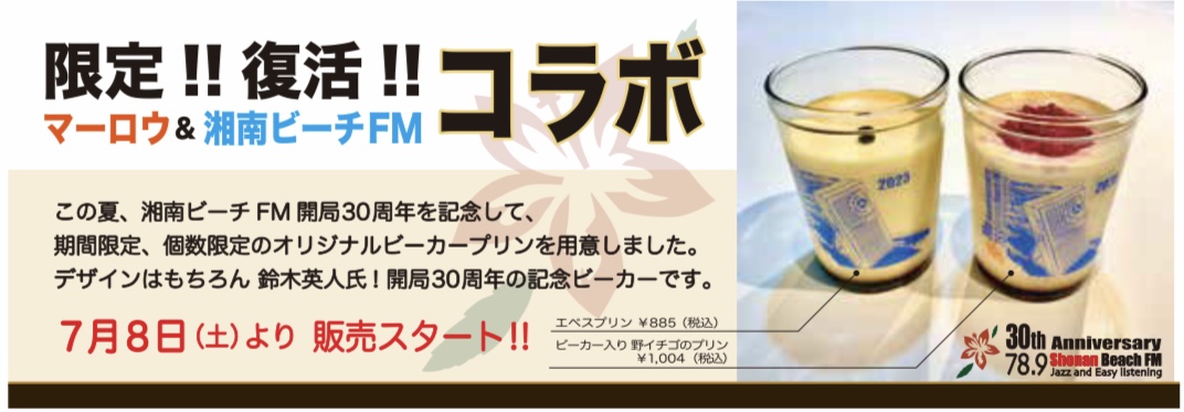 限定!! 復活!! マーロウ&湘南ビーチFM コラボ オリジナルビーカープリン 発売決定!!!