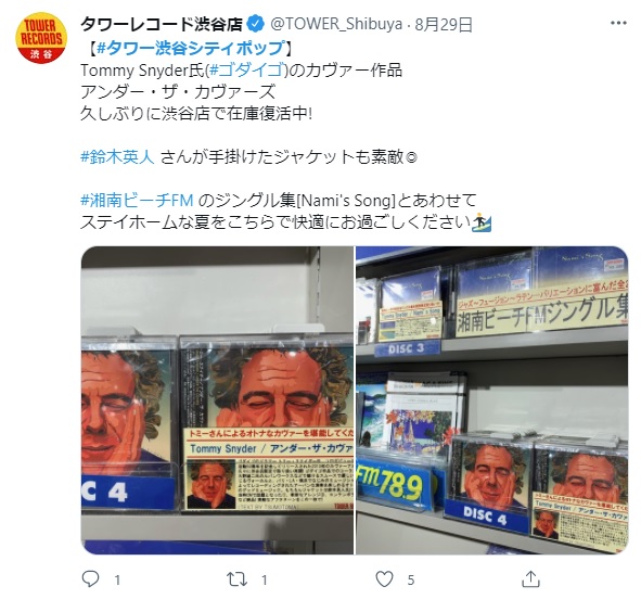 タワーレコード渋谷店にてTommy Snyder氏(ゴダイゴ)のカヴァー作品 アンダー・ザ・カヴァーズ販売中です!