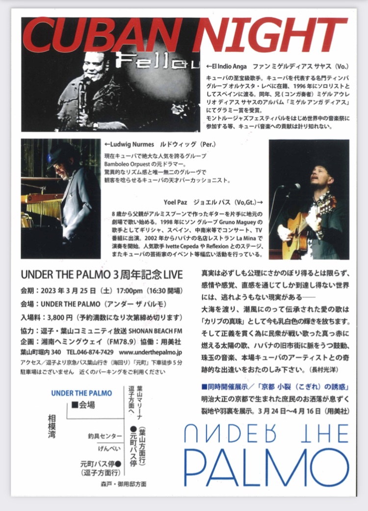 アンダーザパルモオープン3周年を記念ライヴ「CUBAN NIGHT(キューバの夜)」