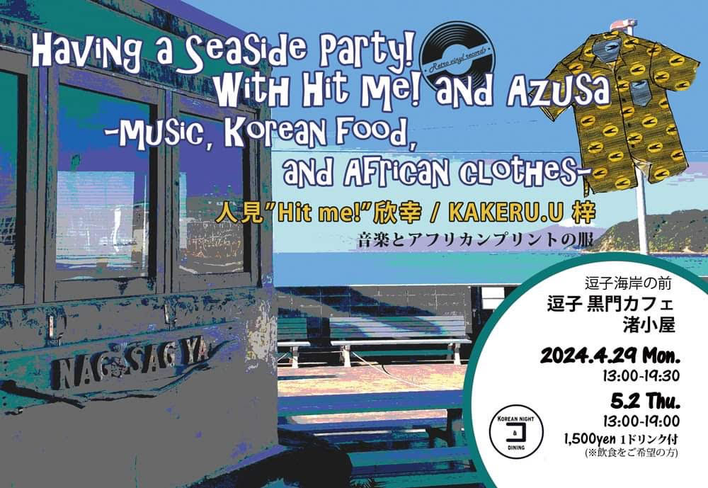 逗子海岸前のカフェ 渚小屋にて開催の人見欣幸presnts “Having a Seaside Party wiyh Hit Me!and AZUSA”。
