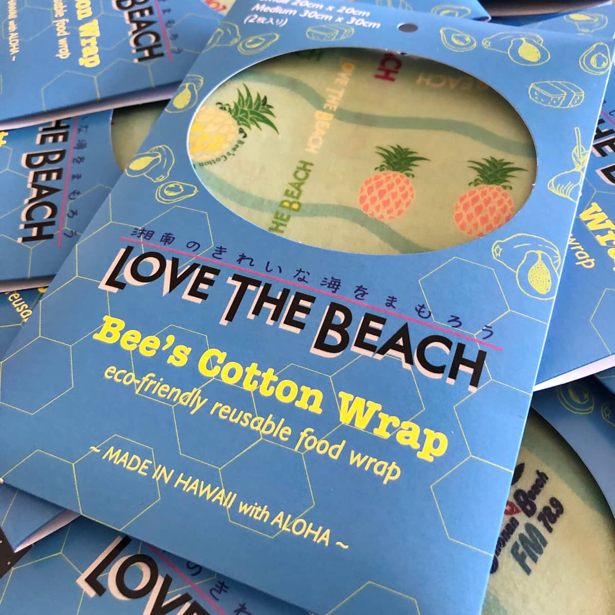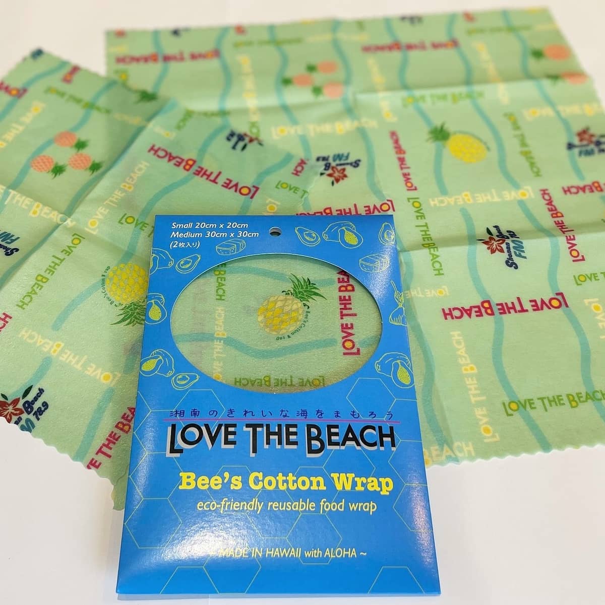湘南ビーチFMが展開している環境キャンペーン「LOVE THE BEACH」では、この度、毎週日曜日10:00-10:30にお届けしているハワイアンプログラム『Nà Ⅿele nahenahe』と現地ハワイで話題の蜜蝋ラップ『Bee‘s Cotton Wrap』とコラボしたオリジナル商品をプロデュースしました。日本同様海洋ごみが問題視されているハワイ。この商品は、プラスチックのゴミが⼤量に出てしまう⽇常使いのプラスチックラップに代わり器のカバーとして、また新鮮な野菜や果物を包むなど、また繰り返し使える商品としても、環境にやさしい話題の商品です。