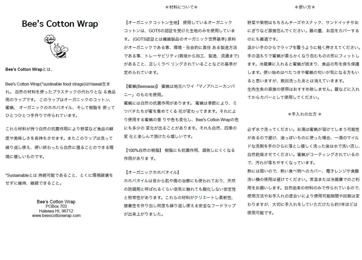 Bee‘s Cotton Wrap商品説明